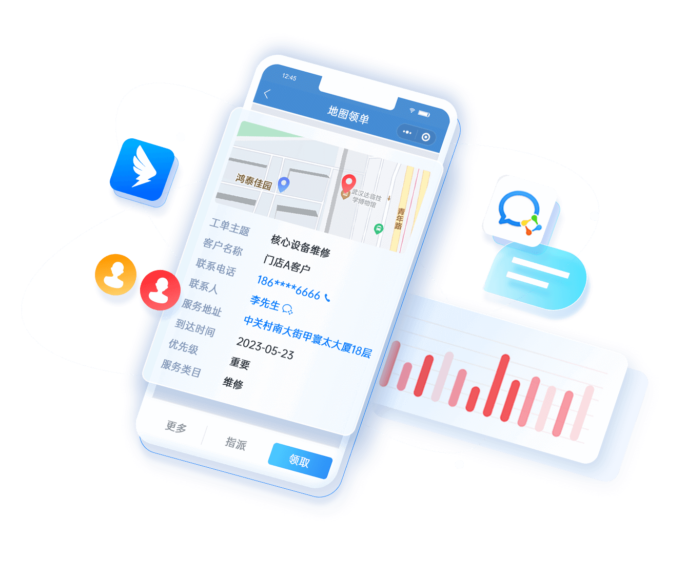 - 按區(qū)域/工單類型/產(chǎn)品類型進(jìn)行地圖派單、手動派單和工單池?fù)寙?/li>